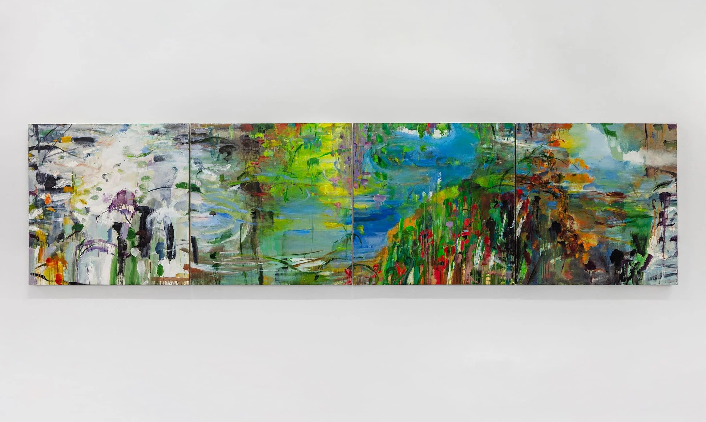 Seasons By a Pond, oil on canvas, 2000, 48 × 48” each / 48 × 192” overall